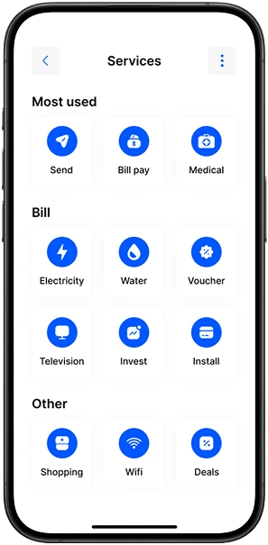 Connect local mobile wallets for cash‑in, cash‑out, bill payments, and wallet‑to‑wallet transfers.